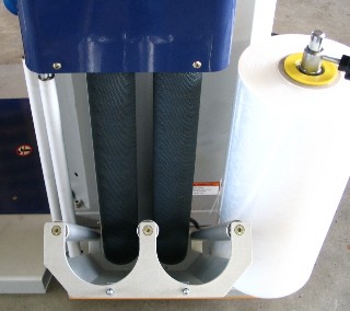 Die Vordehnung von 250 % wird mittels eigenen Motors innerhalb des Folienträgers erzielt. Sie erhalten aus 1,00 m = 3,50 m Folie. Über einen Frequenzregler kann noch die Anlegespanung (Geschwindigkeit Auswurf der Folie aus dem Träger)eingestellt werden. Durch dieses Zusammenspiel können Sie selbst leichteste Paletten ohne Niederhalter einstretchen und ein verrutschen des Packstückes auf der Palette ist nicht mehr möglich. Eingestellt wird diese Anlegespannung ebenfalls über Drehschalter mit Frequenzregler. Die auf dem Folienträger montierte Standardfotozelle erkennt Packstücke bis "Wellpappenbraun". Sollten Sie dunkle Packstücke einstretchen oder die Anlage in einem dunklen Umfeld montiert sein, empfehlen wir den Einsatz einer optionalen "Schwarzlichtfotozelle". |